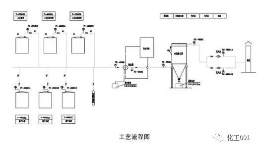 萘結片裝置工業萘槽及液萘發貨產生的含萘廢氣,在引風機的作用下,進入集氣管,集中后經立式換熱器處理,部分液態萘流出換熱系統,收集至萘收集槽集中處理;另外部分萘廢氣通過袋式除塵器捕集凈化,萘被收集后送至萘收集槽集中處理,氣體則通過引風機送入煙囪高空排放(見下圖)。