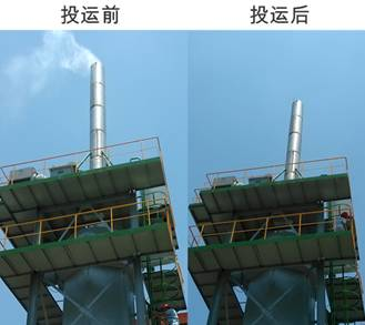 圖3蜂窩管式WESP試驗(yàn)平臺(tái)投運(yùn)前、后對(duì)比圖