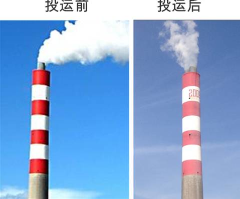 圖5國電北侖電廠#7機(jī)組WESP投運(yùn)前、后煙囪排放對(duì)比圖
